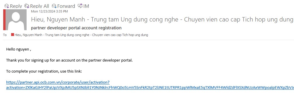 After registration, the system will send an email containing an account activation link.