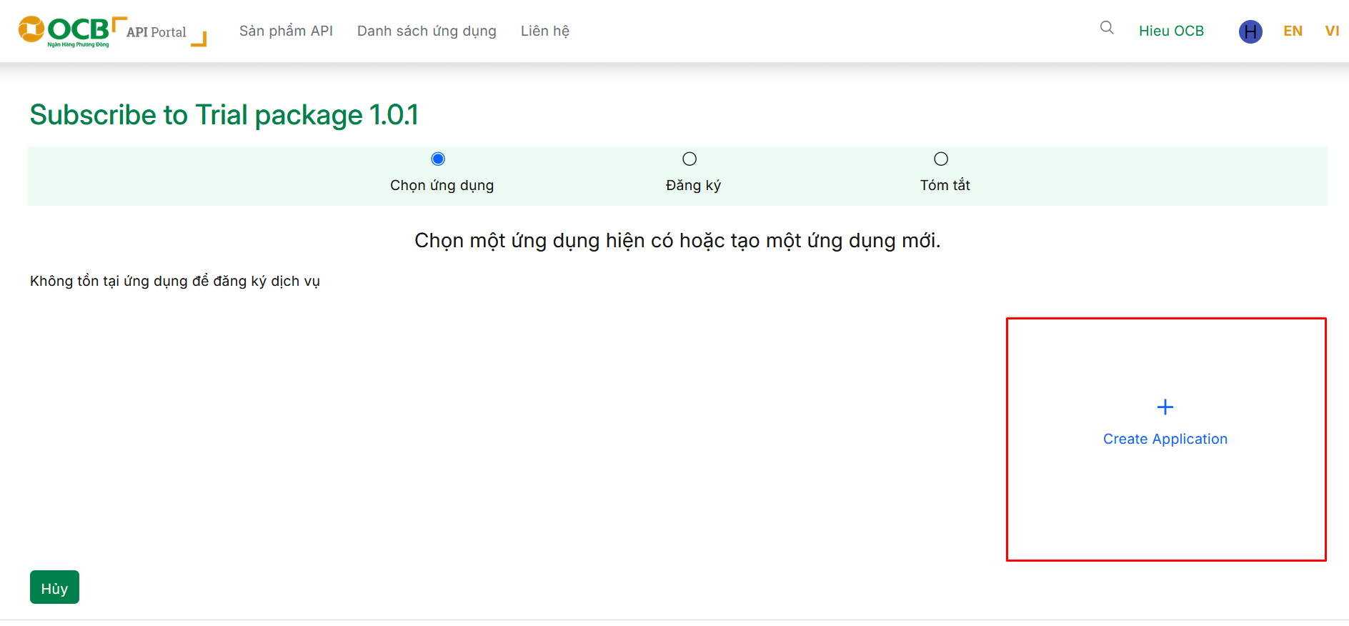 - Nhấn “Tạo mới ứng dụng”.