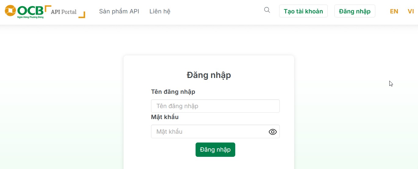- Nhấn “Bắt đầu” để truy cập danh sách sản phẩm API.