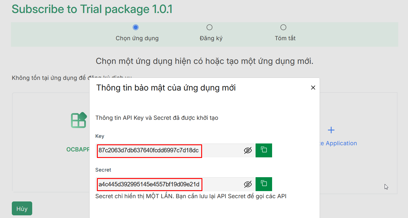 Lưu ý: Sau khi tạo thành công, vui lòng lưu lại Client ID (API Key) và Client Secret để sử dụng khi gọi API.