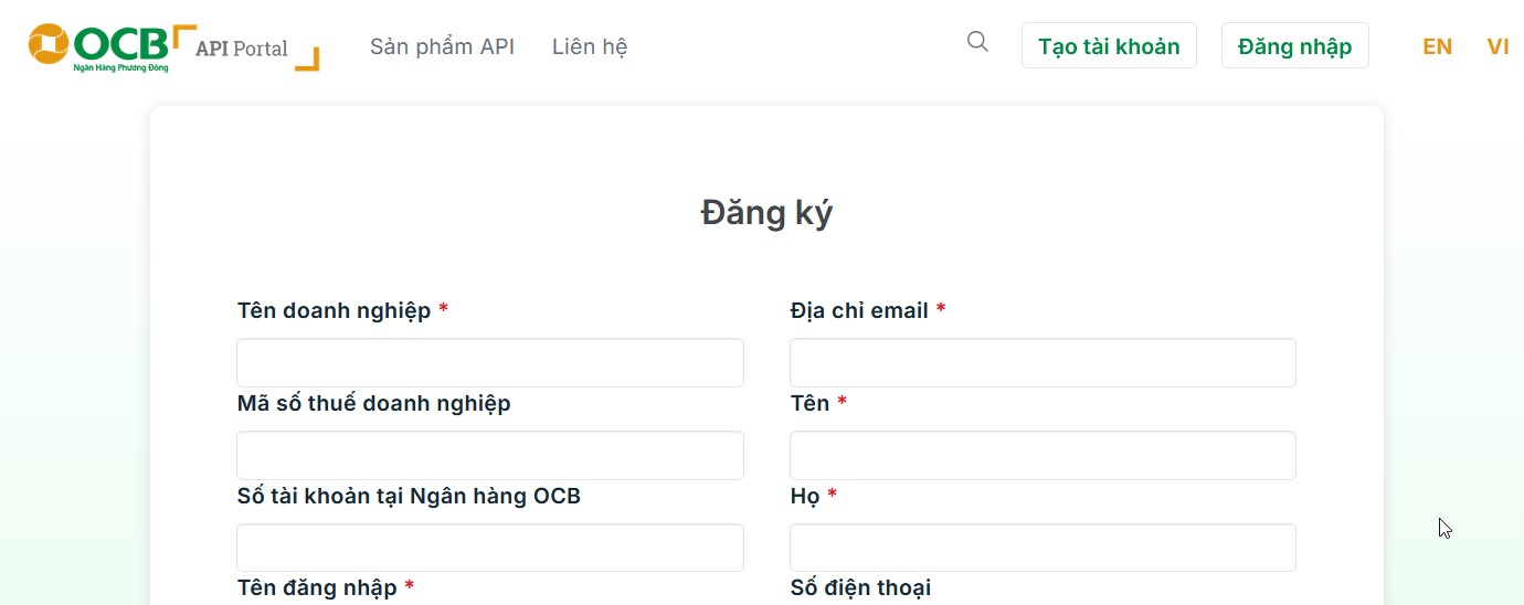 Điền đầy đủ thông tin tài khoản và gửi yêu cầu.