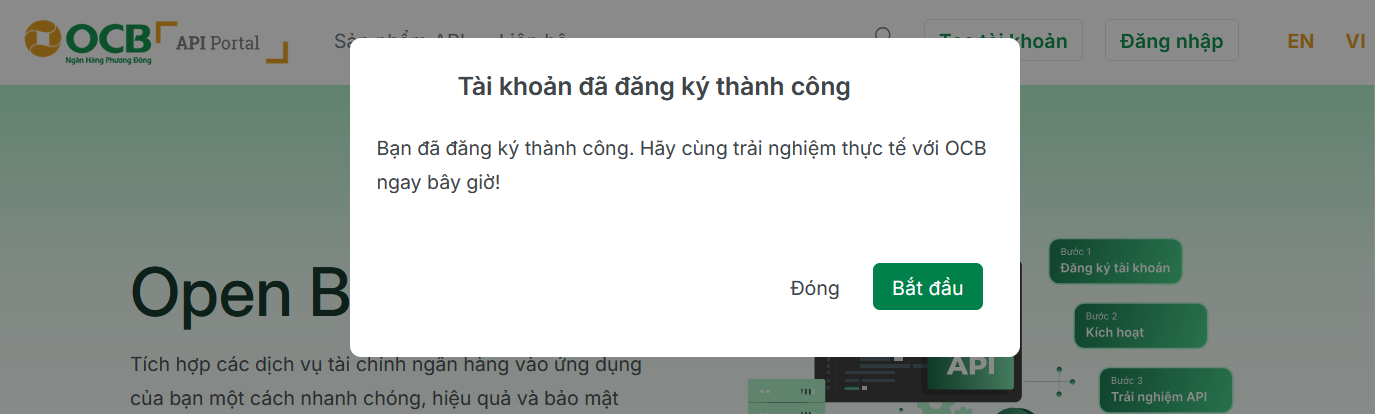 - Nhấn “Bắt đầu” để truy cập danh sách sản phẩm API.