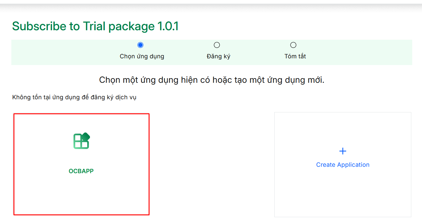 Chọn Application vừa tạo để hoàn tất việc subscribe Plan.